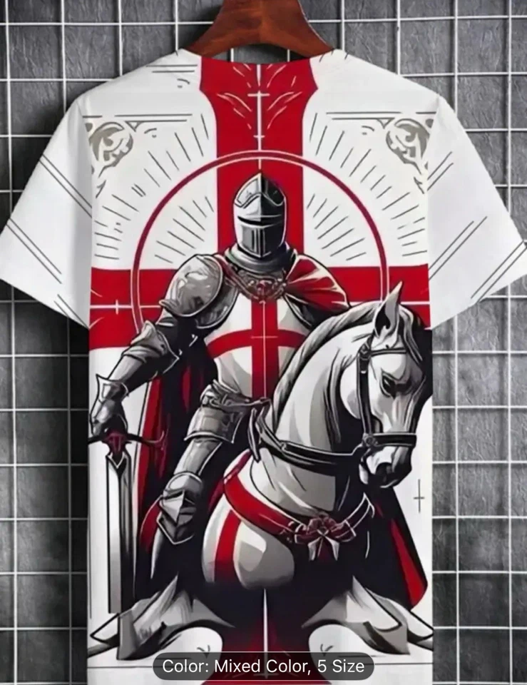 Men’s Medieval Knight Graphics T-shirt Light Shirt with St George’s Cross